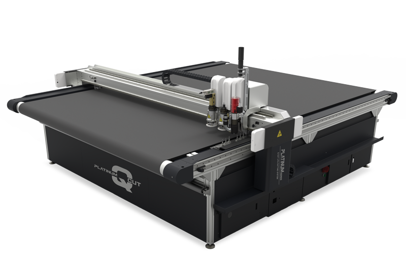Il plotter industriale Q3 è dotato di sistema parzializzato di aspirazione a 4 turbine e rullo di pressione del materiale sia in entrata che in uscita.