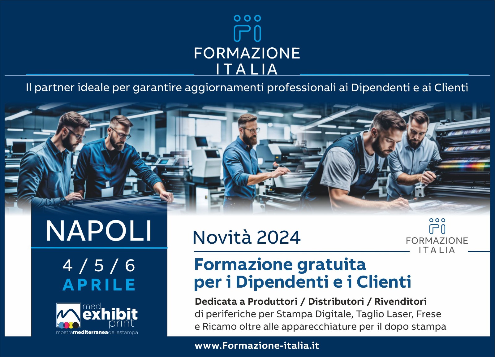 Una delle novità 2024 a cura di Formazione Italia, un partner ideale per garantire aggiornamenti professionali ai Dipendenti e ai Clienti è la Formazione gratuita per i Dipendenti e i Clienti, Dedicata a Produttori / Distributori / Rivenditori di periferiche per Stampa Digitale, Taglio Laser, Frese e Ricamo oltre alle apparecchiature per il dopo stampa, una vera opportunità per il settore.