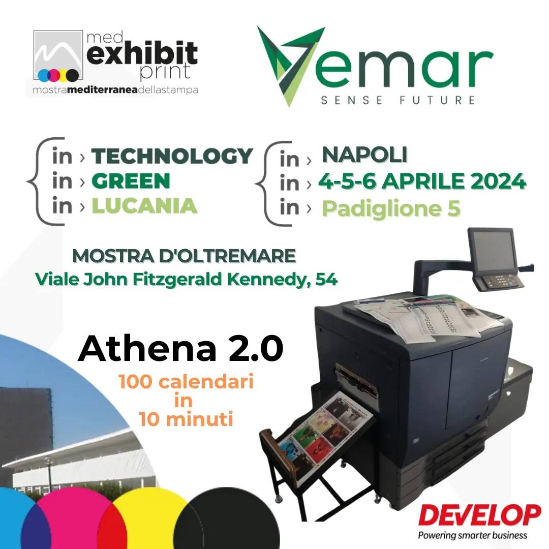E in questa 2°Edizione della Med Exhibit Print, ritorna in Fiera per il secondo anno consecutivo proponendo al mercato dei professionisti delle arti grafiche Soluzioni innovative e all’avanguardia, tra le quali la Athena 2.0, in grado di stampare 100 calendari in 10 minuti, e molto altro ancora.